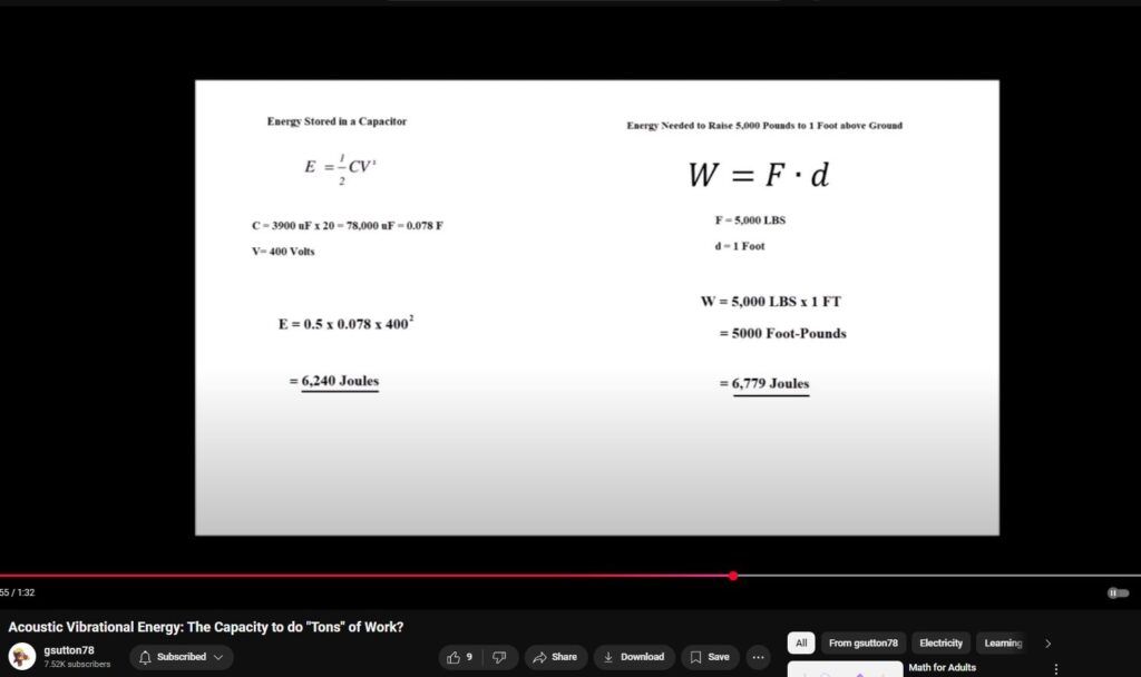 Charge a large capacitor to 400 VDC. It stores enough energy to raise a typical 2.5 ton pyramid block by 1 foot.