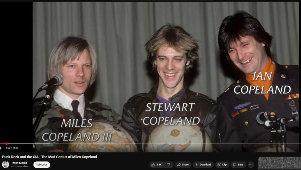 Got here via SOUND QUALITY site run by an ORGanization — notes Stu Copeland revealed his dad as ‘founding member of CIA’ on a Late Night w Bob Costas interview in 1980s/1990s.